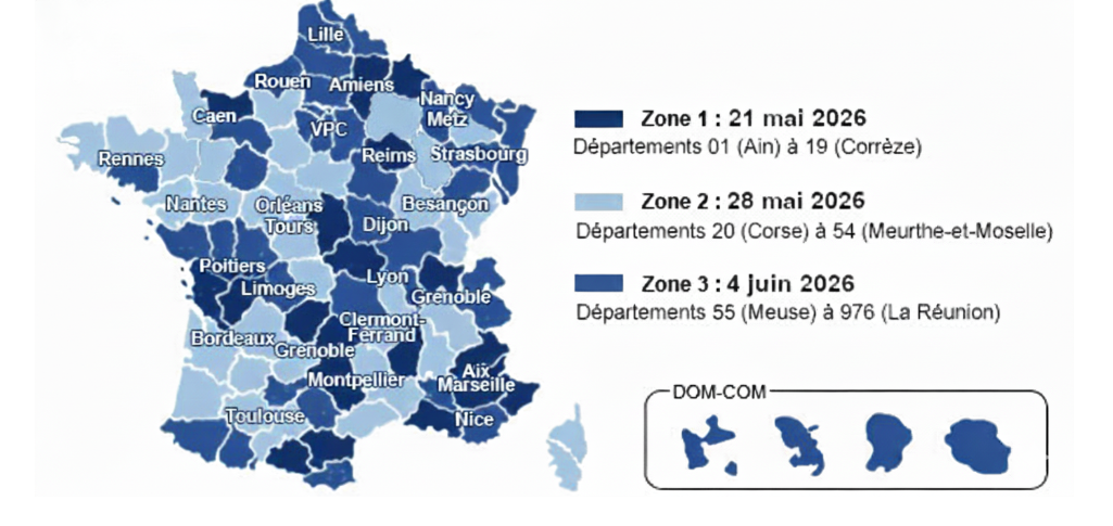 - 21 mai 2026 : départements 01 à 19